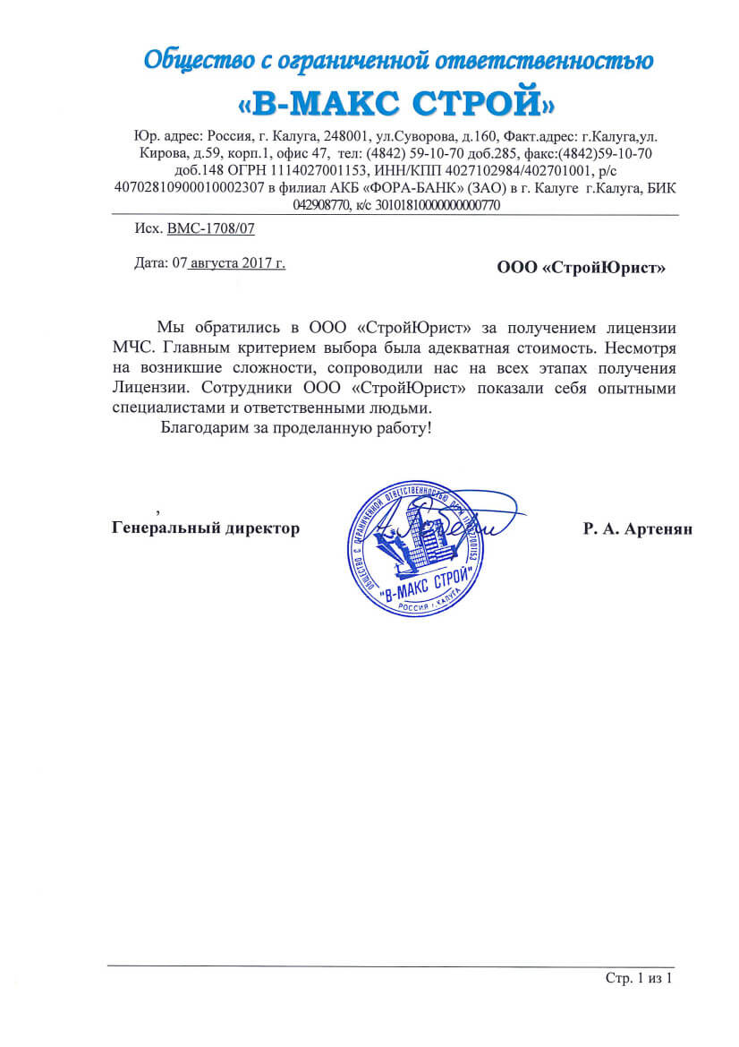 Отзывы клиентов "СтройЮрист" по лицензированию МЧС в Туле