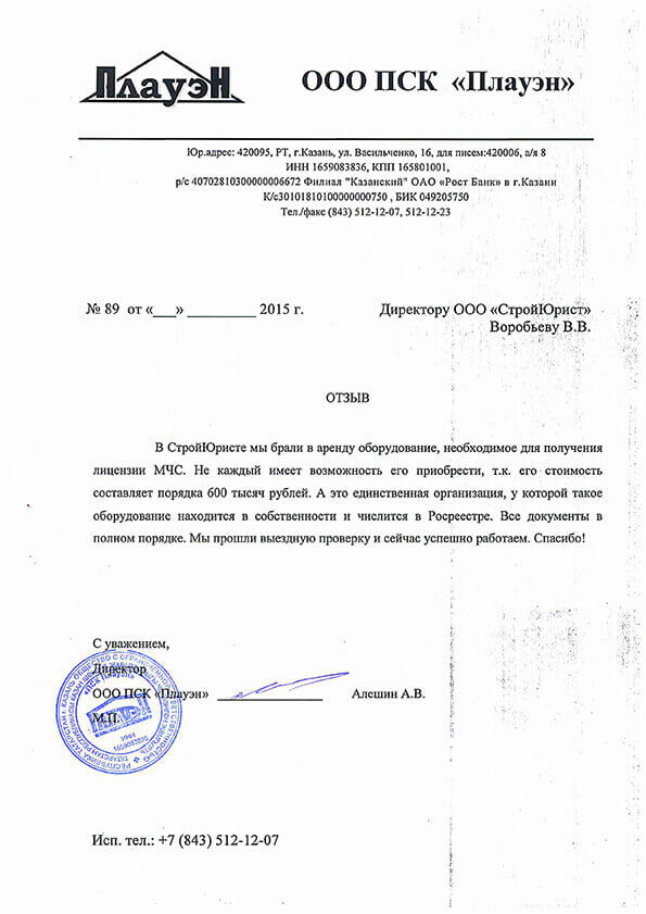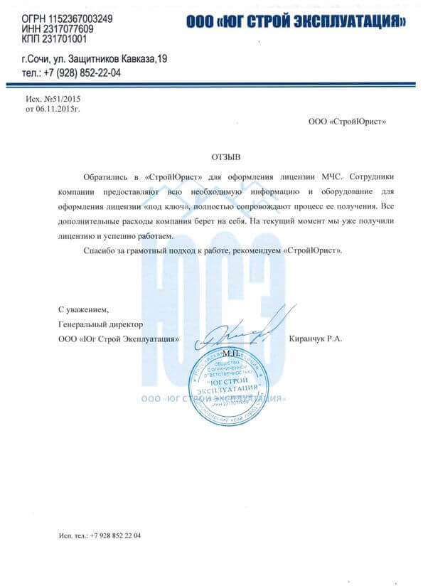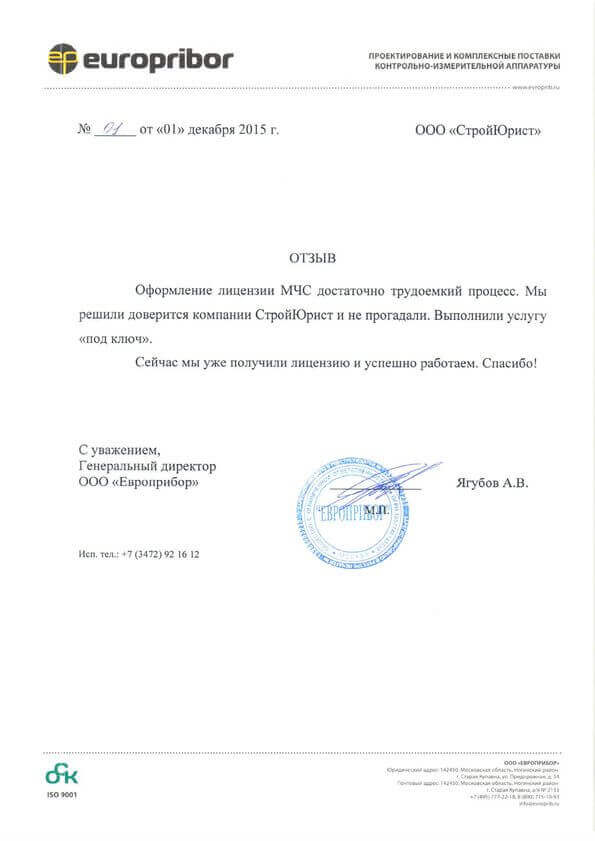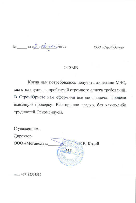 Отзывы клиентов "СтройЮрист" по лицензированию МЧС в Туле